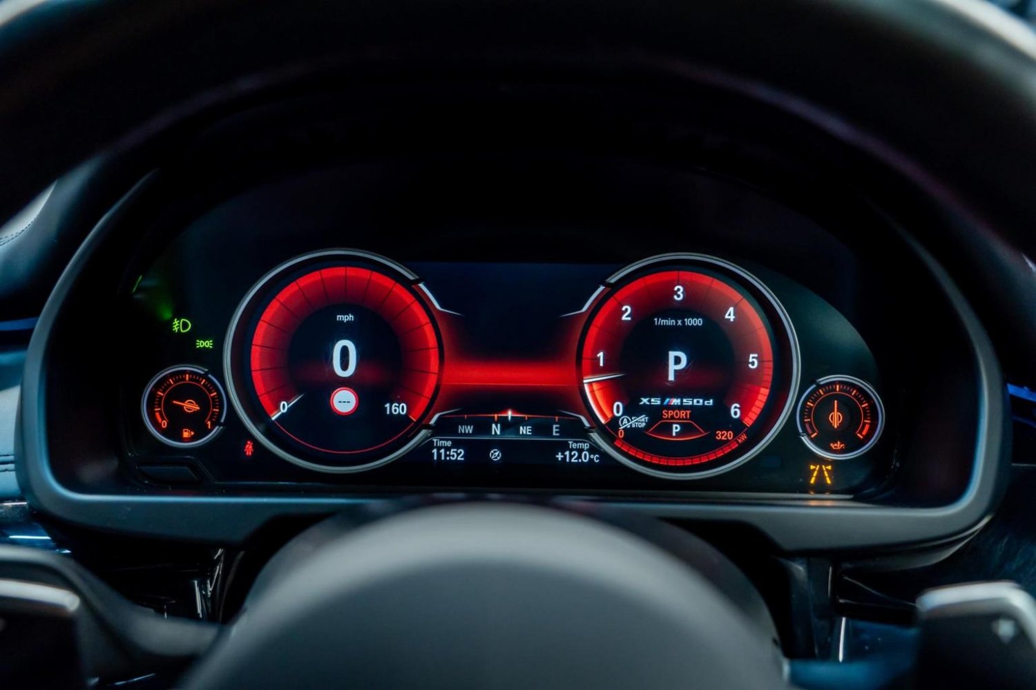 19in Alloy Wheels - Light M Double Spoke Style - 467, 20GB HDD Memory, 40-20-40 Split Folding Rear Seats, Adaptive M Sport Suspension, Air Conditioning - Automatic with Two-Zone Control, Airbags, Alarm System - Thatcham 1 with Remote Control and Engine Immobiliser, Ambient Interior Lighting, Armrest - Front with Storage Compartment, Automatic Start-Stop Button, Automatically Dimming Rear View Mirror, Auxiliary Input Point for Auxiliary Playing Devices, BMW ConnectedDrive Online Services, BMW ConnectedDrive Services, BMW Emergency Call, BMW Professional Radio with Single CD Player - with MP3 Playback Compatibility, BMW TeleServices, Bluetooth Hands Free with USB Audio Interface, Brake Force Display, Check Control Warning System, Child Locking System - Rear Doors, Child Seat ISOFIX Attachment - Rear x2, Concierge Service, Condition Based Service, Courtesy Lights - Front and Rear with Soft On-Off Dimming, Cruise Control with Brake Function, Cup Holders - Front and Rear, DAB Digital Radio, DSC - Dynamic Stability Control Plus, Deformation Zones - Front and Rear, Direction Indicator - Side Repeaters - Integrated in Exterior Mirrors, Door Handles - Body Colour, Door Handles with Downlights, Door Mirrors - Ferric Grey Housing, Door Sill Finishers - M50d Designation, Driving Assistant, ECO PRO Mode, Electric Windows - Front and Rear, Electro-Mechanical Parking Brake with Auto-Hold Function, Exhaust Tailpipes - Stainless Steel with Black Finisher - Left and Right, Extended Storage, Exterior Trim - High Gloss Shadowline, Favourite Buttons, First Aid Kit and Warning Triangle, Floor Mats - Velour, Folding Side Mirrors with Auto-Dimming, Follow Me Home Headlight Function, Footwell Lights - Front with LED, Gearshift Lever with M Designation, Glove Compartment - Lockable and Illuminated, Head Restraints - Front and Rear, Headlining - Anthracite, High Level Third Brake Light, Incorrect Fuelling Protection System, Indicator Lenses - Clear, Instrument Binnacle with Speedometer - Tachometer - Fuel Level and Consumption, Instrument Cluster with M50d Designation, Interior Trim - Aluminium Hexagon, Kidney Grille - Chrome with Titanium Vertical Slats, LED Fog Lights - Front, Locking Wheel Bolts, Loudspeaker System with Six Speakers, Luggage Compartment - Retractable and Removable Cover, M Aerodynamic Bodystyling, M Designation on Front Side Panels - Left and Right, M Leather Steering Wheel with Gearshift Paddles, M Servotronic Power Steering, Navigation System - BMW Professional Multimedia, OBC - On Board Computer, Optimum Shift Indicator, PDC - Park Distance Control - Front and Rear, Personal Profile, Power Socket - 12V in Luggage Compartment, Power Socket - 12V in Small Folding Compartment in Centre Console, Power Sockets - Two 12V in Centre Console - Rear, Rain Sensor with Automatic Headlight Activation, Reading Lights - Front and Rear, Real Time Traffic Information, Rear Window Wiper with Wash-Wipe System, Remote Control - Integrated Key with M Designation, Remote Control Locking, Remote Services, Roof Rails - High-Gloss Shadowline, Run Flat Tyres, Seat Belts - Front - Inertia Reel with Pyrotechnical Belt Latch Tensioner - Belt Force Limiter and Belt Restrainer, Seat Belts - Rear - Three with Inertia Reel, Seat Heating - Front, Seats - Front Electric Adjustment with Driver Memory, Securing Rings in Luggage Compartment x4, Side Impact Protection, Smokers Package, Sport Automatic Transmission, Sport Seats - Front, Steering Column with Manual Reach and Rake Adjustment, Storage Compartment - Interior Door Panels, Sun Visors with Illuminated Vanity Mirrors, TPMS - Tyre Pressure Monitoring System, Tailgate Split, Tailgate with X5 M50d Designation, Toolkit Located in Luggage Compartment, Upper Tailgate Operation - Powered, Voice Control, Windows - Heat Insulated-Green Tinted All Round, Windscreen Washer Jets - Heated, Xenon Headlights, iDrive Touch Controller with Shortcut Buttons