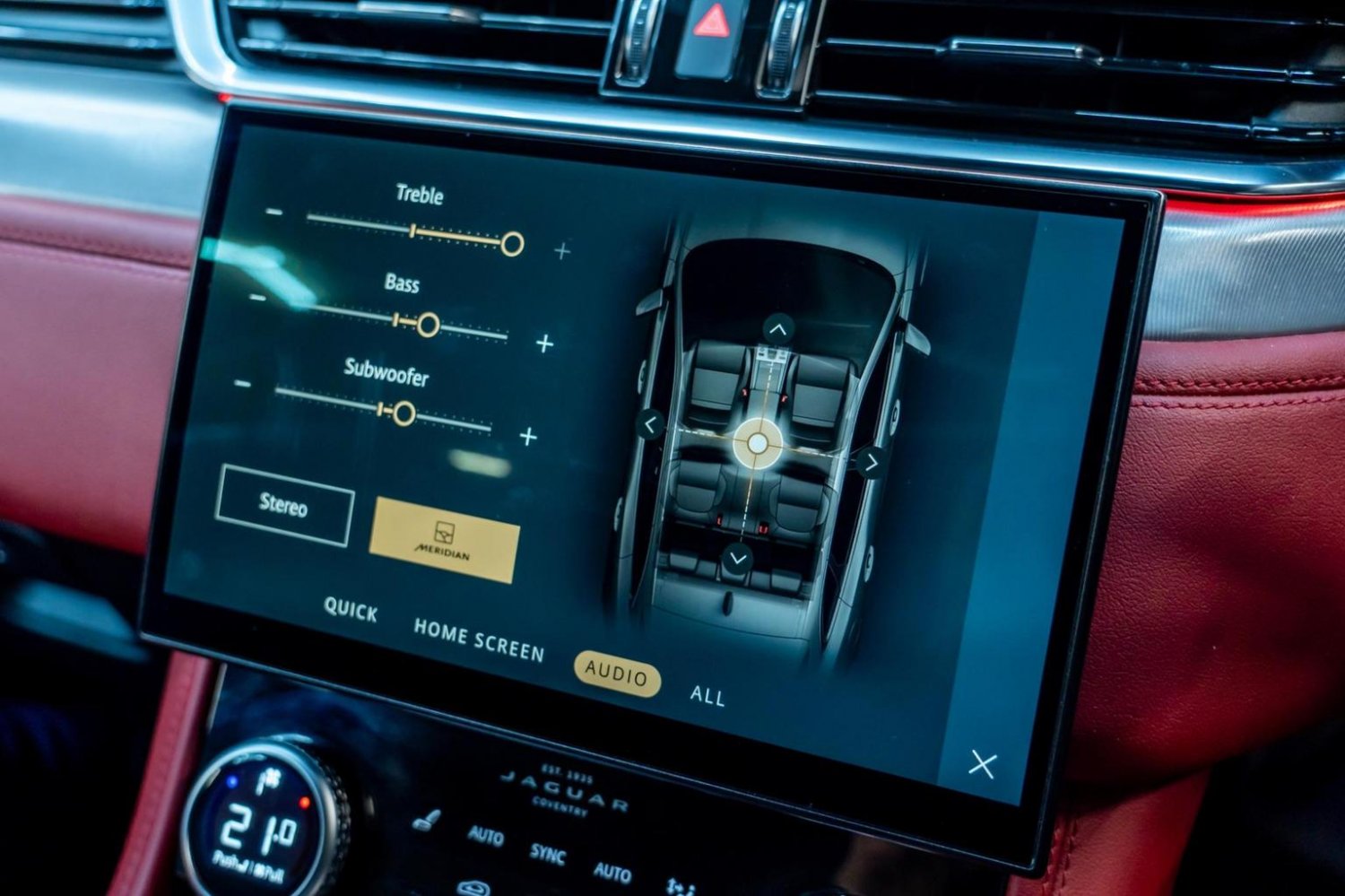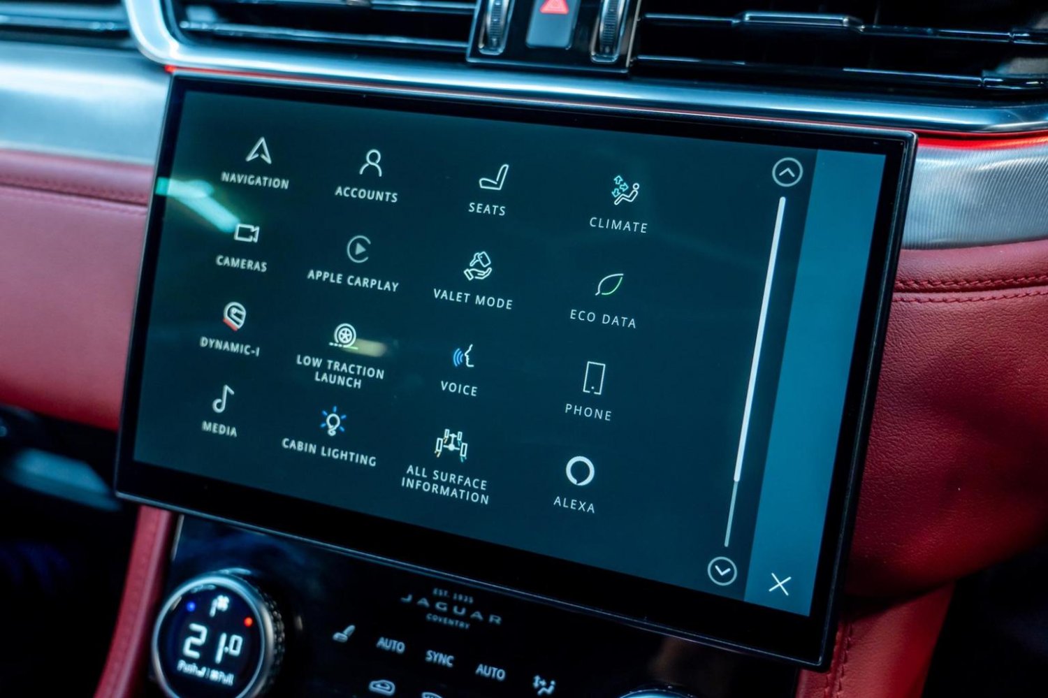 It Comes With The Following OPTIONAL SPECIFICATION : Black Exterior Pack, Sliding Panoramic Glass Sunroof, Powered Gesture Roof Blind, Pixel LED Headlights with Signature DRL, Front Fog Lights, JaguarDrive Control with Adaptive Surface Response, Interactive Driver Display, 3D Surround Camera, Meridian Surround Sound System, Wireless Device Charging with Phone Signal Booster, Perforated Windsor Leather Performance Seats-Mars Red with Ebony-Mars Red Interior, 14-Way Heated and Cooled Electric Memory Performance Front Seats, Rear Seat Remote Release Levers, Engine Spin Aluminium Trim Finisher, Ebony Suedecloth Headlining, Powered Gesture Tailgate, Privacy Glass, Red Brake Calipers, Jaguar Tyre Repair System, Reduced Section Steel Spare Wheel, 22in Alloy Wheels-15 Spoke Style 1020 with Gloss Black Finish and Satin Black Inserts, Panroof