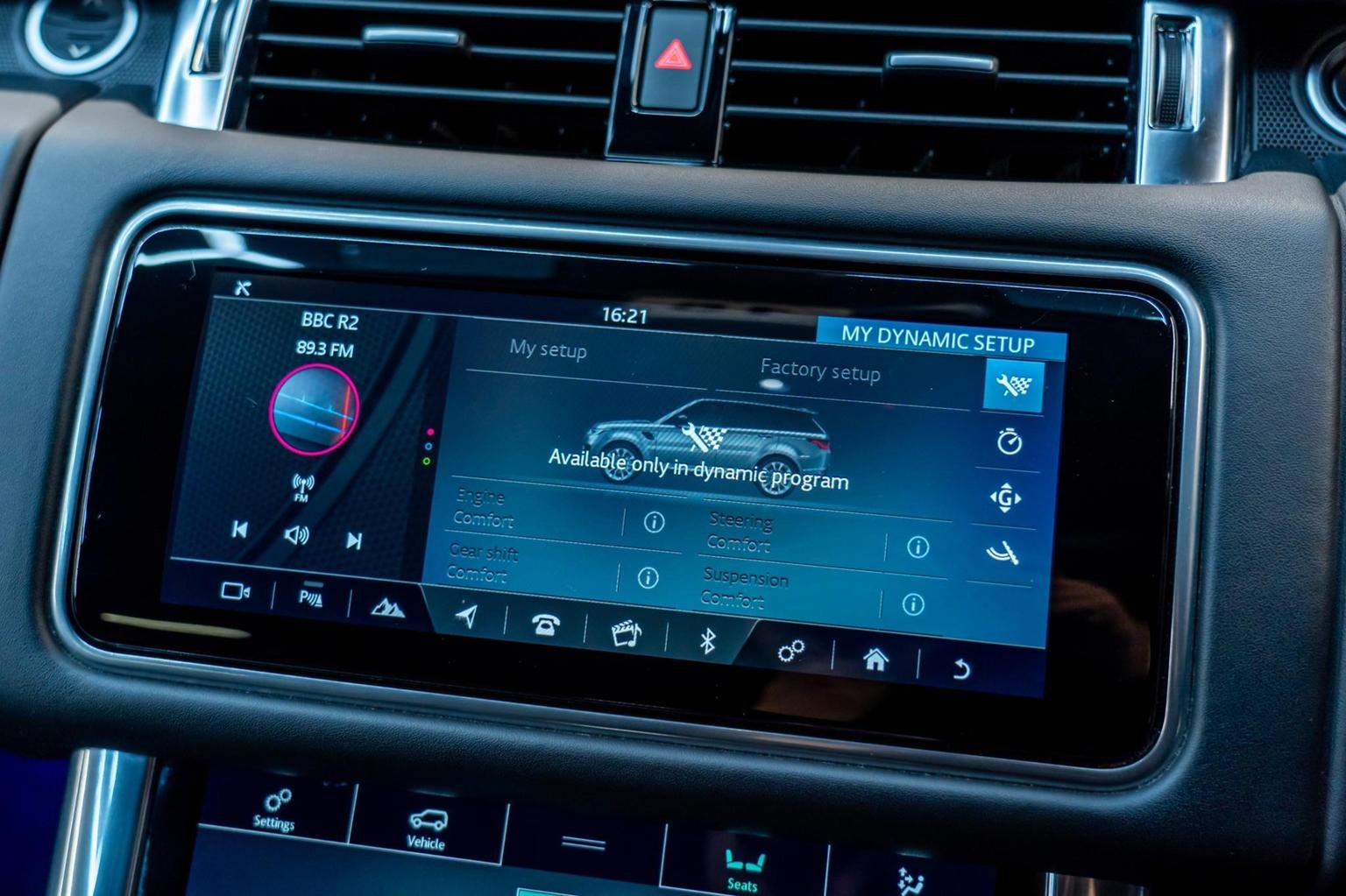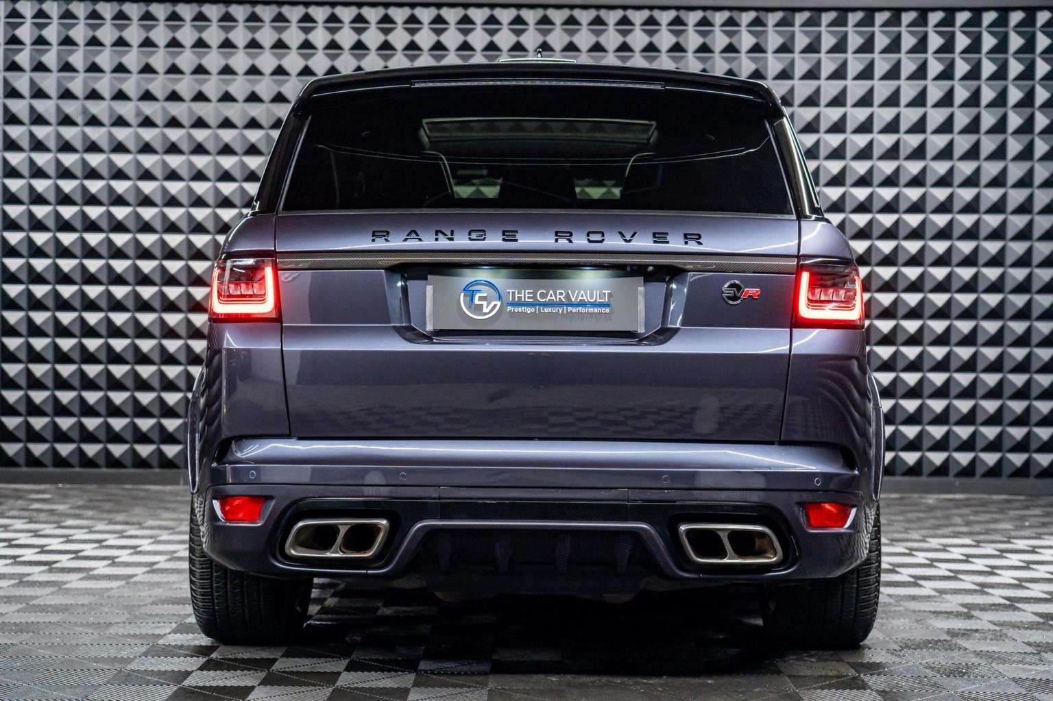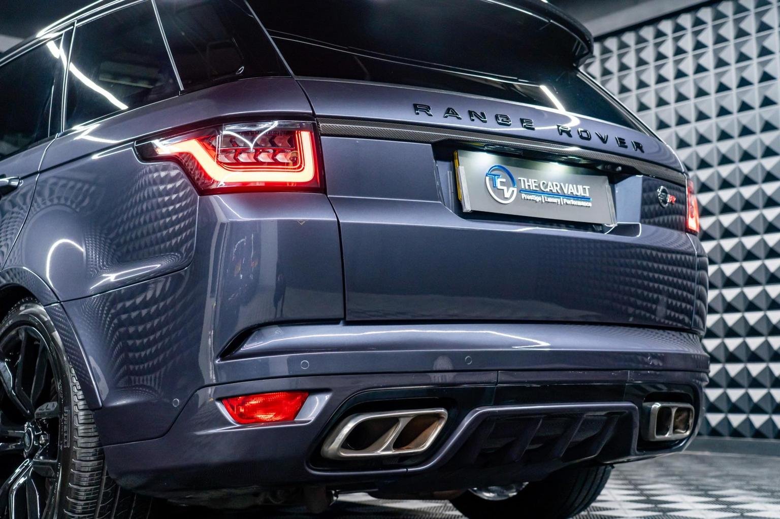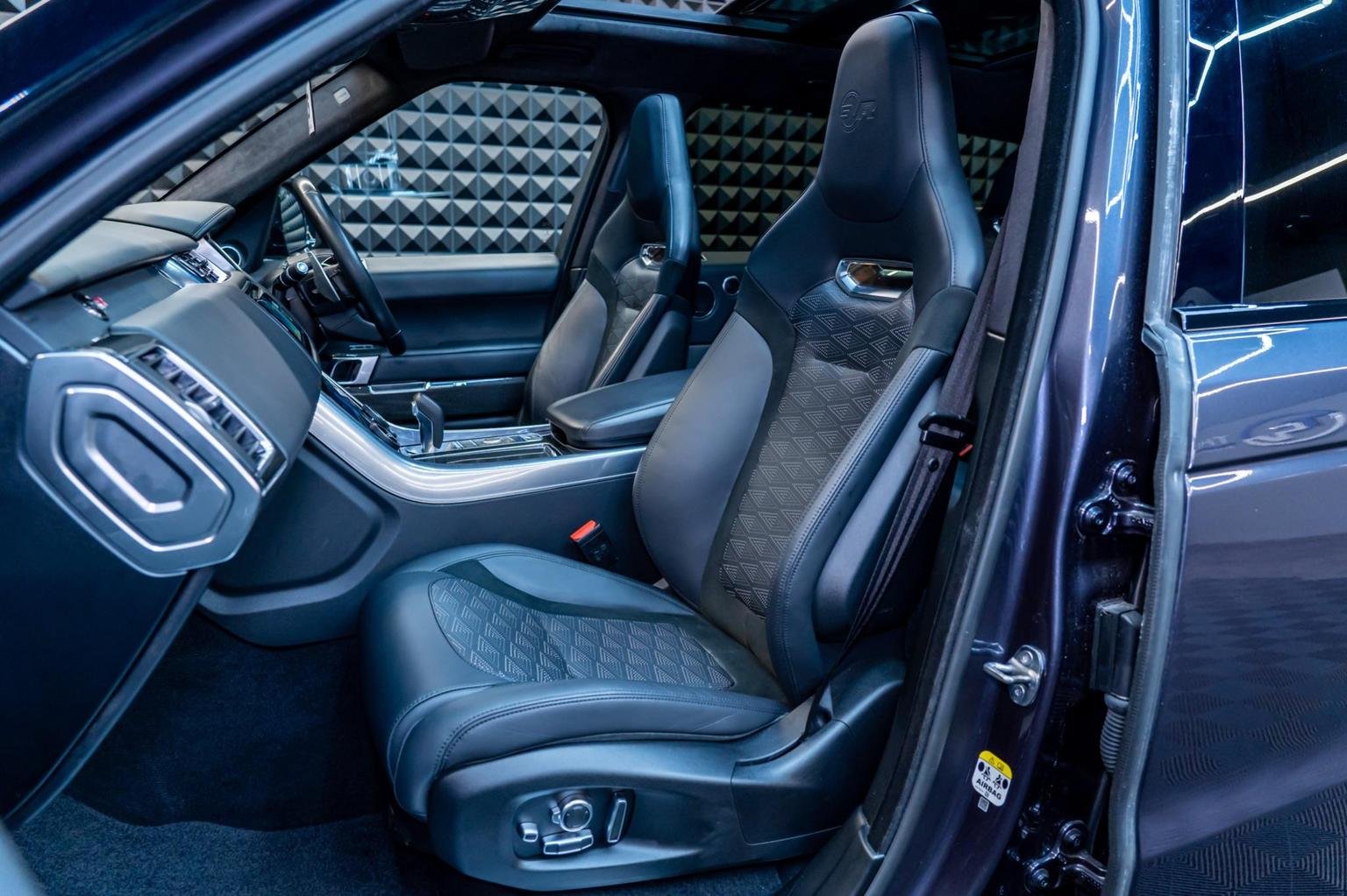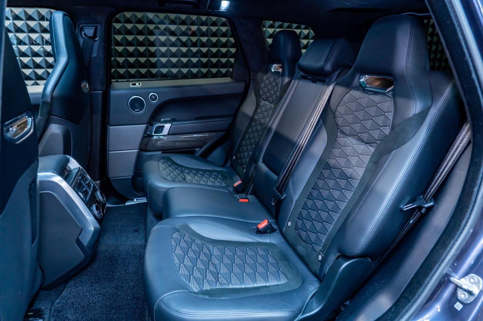 12V Power Socket, 22in Alloy Wheels - 5 Split Spoke Style 5083 with Gloss Black Finish, 360 Degree Parking Aid, 60-40 Folding Rear Seats, ABS - Anti Lock Braking System, ATPC - All Terrain Progress Control, Active Exhaust Control, Adaptive Cruise Control with Stop and Go, Adaptive Dynamics, All Terrain lnfo Centre, Aluminium Gearshift Paddles, Auto-Dimming Interior Mirror, Auto-Dimming Power Fold - Heated Door Mirrors with Memory and Approach Lights, Automatic Headlights, Bluetooth Connectivity, Body Coloured Side Sills and Bumper Corners, Bonnet - Exposed Carbon Fibre, Brake Pre-fill, Bright Metal Pedals, CBC - Cornering Brake Control, Centre Console with Armrest, Clear Exit Monitor, Configurable Dynamics, Contrast Painted Roof - Narvik Black, Customer Configurable Autolock, Customer Configurable Single Point Entry, DAB - Digital Audio Broadcast, DSC - Dynamic Stability Control, Driver Condition Monitor, Driver and Passenger Airbags, EBA - Emergency Brake Assist, EBD - Electronic Brake-Force Distribution, EPAS - Electronic Power Assisted Steering, EPB - Electronic Park Brake, ETC - Electronic Traction Control, Electric Windows with One-Touch Open-Close and Anti-Trap, Electrically Adjustable Steering Column, Electronic Active Differential with Torque Vectoring by Braking, Emergency Braking, Follow Me Home Lighting, Front Door Storage Space, Front and Rear Cupholders, Front and Rear Grab Handles, Front and Rear Recovery Eyes, Glovebox - Lockable, Gradient Acceleration Control - GAC, Gradient Release Control, HDC - Hill Descent Control, Heated Rear Window, Heated Windscreen with Heated Washer Jets, High Speed Emergency Braking, Hill Launch Assist, ISOFIX Child Seat Anchor Points, Illuminated Metal Treadplates with Brand-Name Script, InControl Apps, InControl Protect, Interactive Driver Display, Intrusion Sensor, Laminated Acoustic Front and Toughened Rear Side Glass, Lightweight Exhaust System, Loadspace Compartment Light, Loadspace Cover, Loadspace Mounting Provisions, Locking Wheel Nuts, Low Traction Launch, Meridian Surround Sound System 825W, Non Smokers Pack, Power Operated Child Locks, Premium Carpet Mats, Pro Services and Wi-Fi Hotspot, Push Button Start, RSC - Roll Stability Control, Rain Sensing Windscreen Wipers, Rear Bumper with Integrated Quad Exhaust Finishers, Rear Centre Armrest, Rear Fog Lights, Rear Traffic Monitor, Remote Premium, SVR Badge, Seat Belt Pre-Tensioners, Secure Tracker Pro - 12 Month Subscription, Side Repeater Indicators in Mirror, Smartphone Pack, Sports Suspension with Dynamic Response, Standard Roof, Sunvisors with Vanity Mirrors, Switchable Sports Exhaust, TPMS - Tyre Pressure Monitoring System, TSA - Trailer Stability Assist, Terrain Response 2 with Dynamic Program, Three-Zone Climate Control, Touch Pro Duo, Traffic Sign Recognition and Adaptive Speed Limiter, Twin Speed Transfer Box - High-Low Range, Tyre Repair System