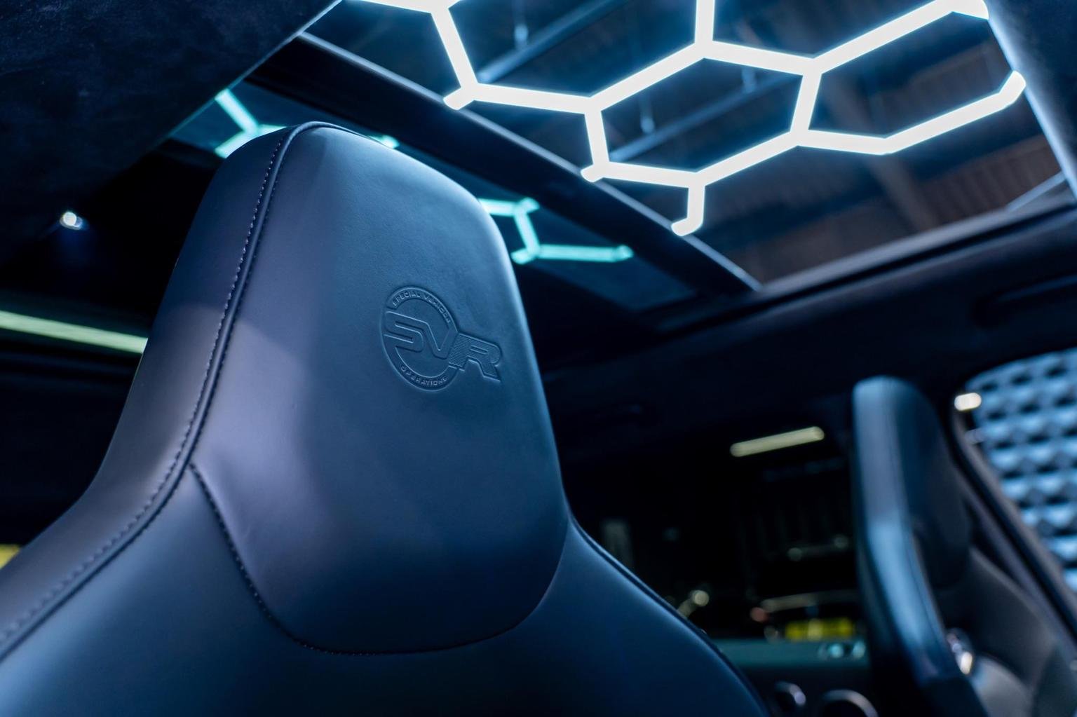GHOST IMMOBILISER, SVR Carbon Fibre Exterior Pack with Exposed Carbon Fibre Bonnet, SVR Switchable Sports Exhaust, SVR Exterior Styling, Carbon Fibre Engine Cover, Sliding Panoramic Roof, Pixel LED Headlights with Signature DRL, Rear View Camera, Keyless Entry, Blind Spot Monitor, Lane Departure Warning, Meridian Surround Sound System, Navigation Pro, Android Auto, Apple CarPlay, SVR Performance Seats, Extended Leather Upgrade, SVR Leather Steering Wheel, Heated Steering Wheel, Heated Front and Rear Seats, Extended Carbon Fibre Trim Finisher, Configurable Interior Mood Lighting, Auto Dimming Power Fold-Heated Door Mirrors with Memory and Approach Lights, Powered Tailgate, Privacy Glass, Red SV Painted Brake Calipers, 22in Alloy Wheels-5 Split Spoke Style 5083 with Gloss Black Finish